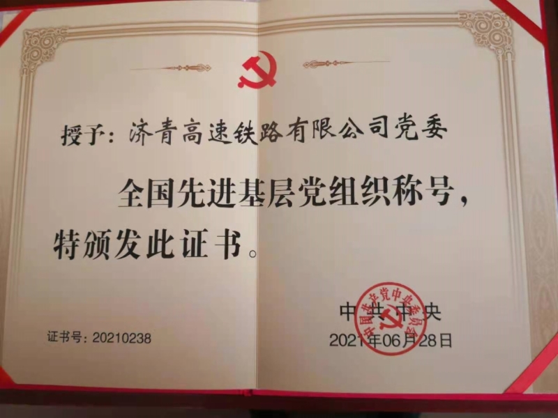 6月28日,全国“两优一先”表彰大会在北京人民大会堂举行。济青高速铁路有限公司党委被评为全国先进基层党组织,这是今年山东省国资系统唯一一个获此殊荣的基层党组织。金牌影院 党委委员、副总经理,济青高铁公司党委书记、董事长杨俊泉参加了表彰大会并领取了证书和奖牌。