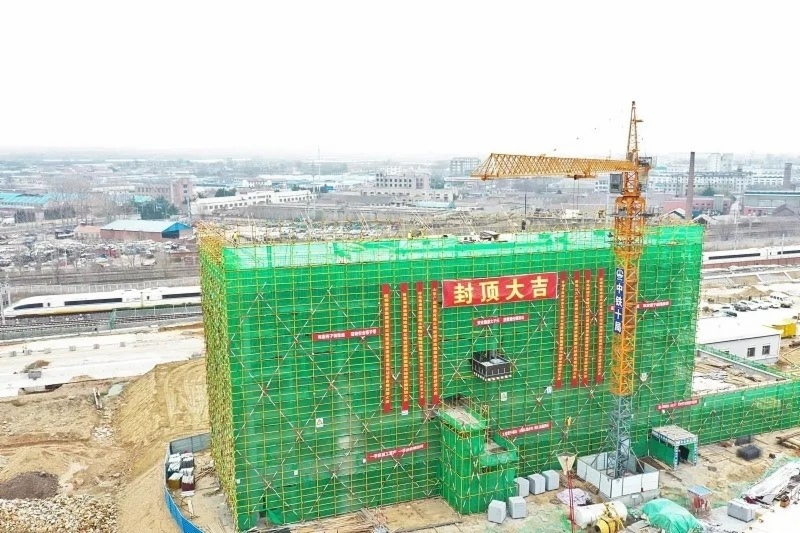 3月26日,潍莱高铁莱西北站综合楼主体工程顺利完工。