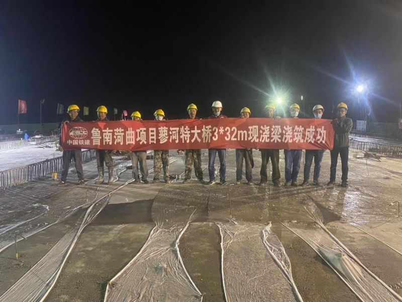 5月13日凌晨4点,经过45小时连续奋战,鲁南高铁蓼河特大桥82#-85#墩3*32.7m道岔现浇梁顺利完成浇筑。