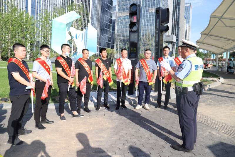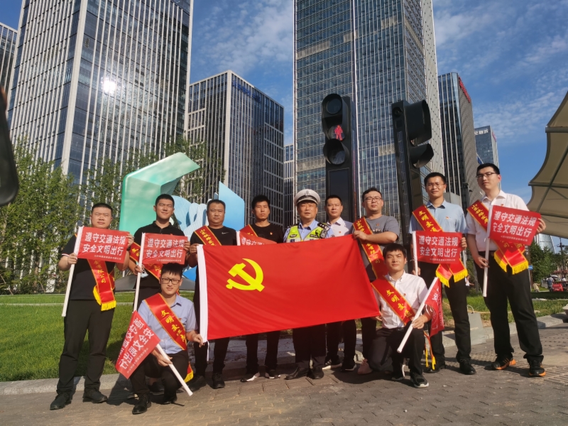在建党99周年来临之际,为积极履行社会责任,进一步提高广大市民的文明交通意识,7月1日下午17:00晚高峰,山东铁路发展基金有限公司党员志愿者们身披“文明交通志愿者”绶带,手持“遵守交通法规、安全文明出行”小红旗,来到经十路与舜华南路交叉口开展“文明交通”劝导志愿服务活动。