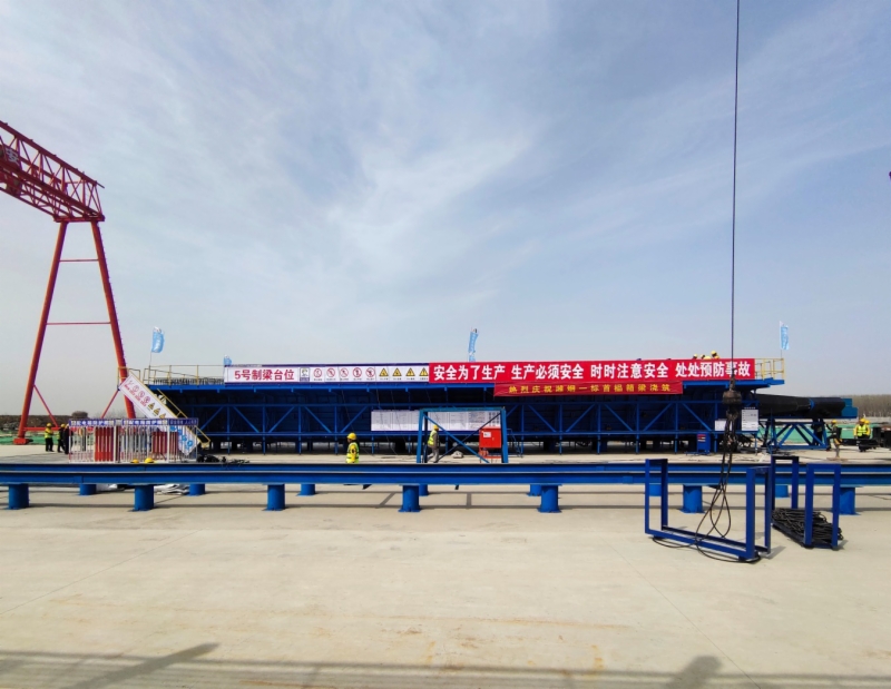 潍烟高铁全线计划预制32m箱梁4328榀、预制24m箱梁397榀。2021年2月21日,全线首榀梁在2标段莱州东梁场成功浇筑,3月10日4标段蓬莱梁场、3月24日5标段蓬莱梁场和6标段福山梁场、3月27日3标段北马梁场、3月28日2标段莱州西梁场、3月31日2标段莱州梁场和1标段昌邑东梁场相继开始浇筑箱梁。全线各标段全面实现梁场制梁,是潍烟高铁“大干120天,喜迎建党100周年“劳动竞赛活动的重要成果之一,极大鼓舞了各参建单位的士气,也标志着潍烟高铁线上工程开始施工。
