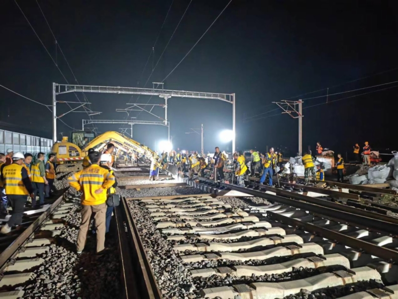 在莱西站、莱西东线路所道岔插铺营业线II级施工过程中,中铁十局、中铁四局分别投入作业人员200余人、挖机7台、捣固车1组,在300分钟天窗点内陆续完成线路拆除、道岔拉铺就位、人工补砟起道、大机捣固稳定、信号设备安装调试等各项工序,安全、正点完成2组道岔插铺施工。