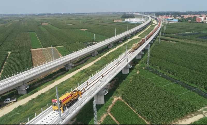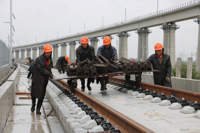 为确保铺轨任务顺利进行,金牌影院 潍烟高铁公司精心组织,各参建单位紧密配合,铺轨施工单位中铁一局克服邻近营业线施工安全风险高、穿越龙烟线运输距离长、上跨潍莱线“天窗点”作业有限空间及线下施工条件限制等诸多困难和挑战,开展昼夜双班施工,全体人员以“保竣工 促进度 筑精品”劳动竞赛活动为契机,战高温、冒骤雨、抢工期,大干60天,提前完成双线340铺轨公里施工任务,创造了单日双班铺轨12.5公里的“潍烟速度”。