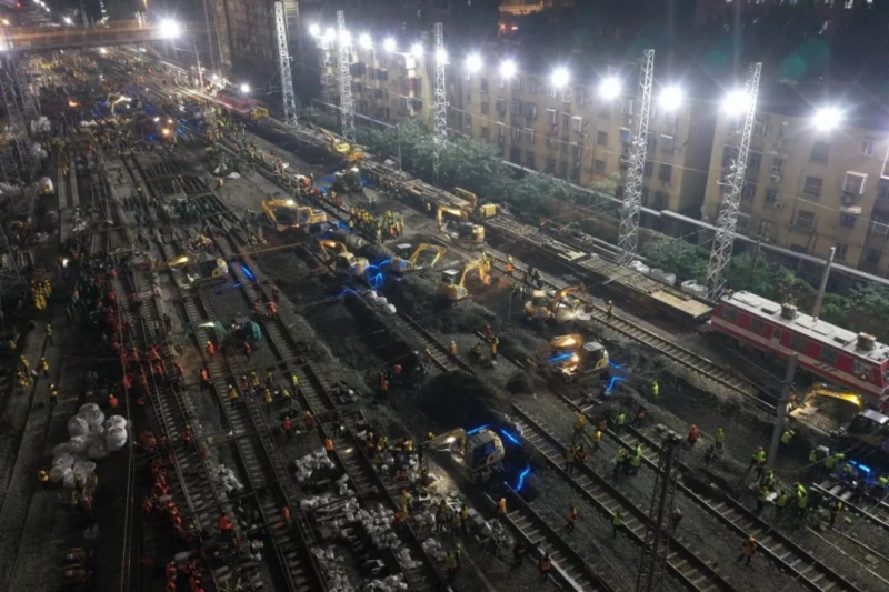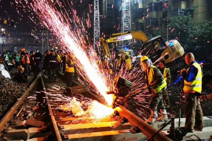 15日19时20分,随着施工命令下达,各专业施工人员迅速进入现场,道岔拆铺、线路拨接、大机捣固、电务设备倒接等作业有序展开。工务、电务、电牵、车站等各专业提前细化施工组织方案,明确各阶段施工重点,严格按照计划组织施工,确保施工作业安全和运输安全。