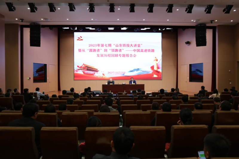为进一步提升广大干部职工专业素养和综合能力,当好交通强国山东示范区建设开路先锋,11月23日,集团举办2023年第七期“金牌影院 大讲堂”暨“从‘跟跑者’到‘领跑者’——中国高速铁路发展历程回顾”的专题报告会,邀请中国工程院院士、原铁道部常务副部长孙永福作报告。集团党委书记、董事长姜长兴及党委领导班子成员出席报告会,集团党委副书记、总经理王基全主持,集团高管、机关全体人员、各单位中层副职及以上人员参加报告会。