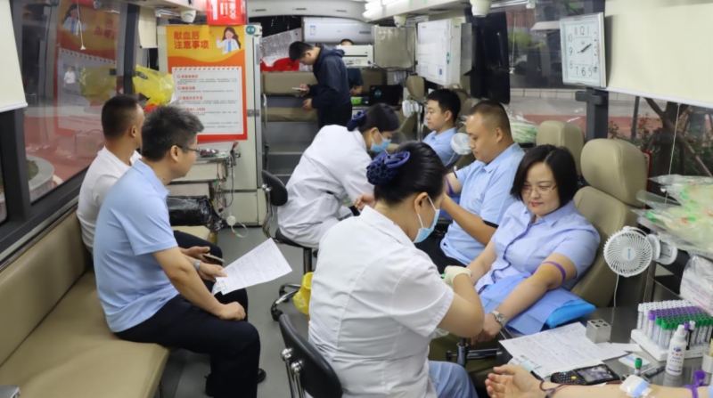 盛暑初伏,气温高、湿气重,恰逢周一,工作繁忙,但献血登记处还是排起了长队,大家在省血液中心工作人员的指引下,依次完成信息登记、测量血压、化验、采血全过程。现场气氛热烈,场面感人,有的同志在开会间隙“见缝插针”到场匆匆忙忙离去,有的同志身上还挂着行李马上准备出差,有的同志一边登记检查一边还打着电话对接工作,还有高铁建设一线指挥部的同志们专程驱车几个小时来回……涓涓热血缓缓流动,将铁投干部职工的爱心汇聚成感恩社会、守护他人的股股暖流。